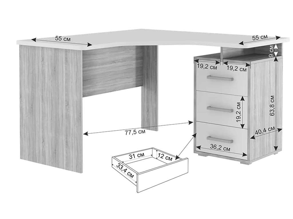 - Стол компьютерный 1200 угловой Лайт-2 графит/дуб крафт золотой