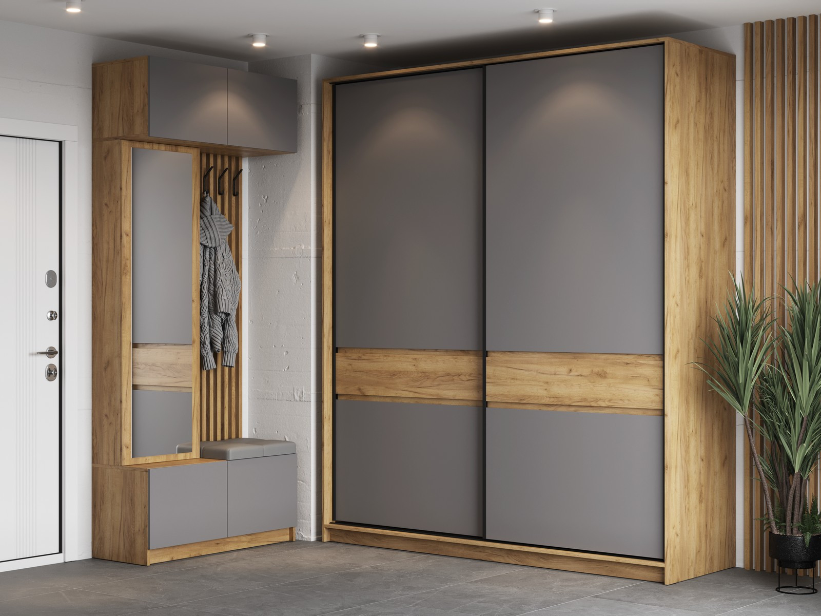 - Модульная прихожая Бостон ЛДСП серый шифер с трехдверным шкафом
