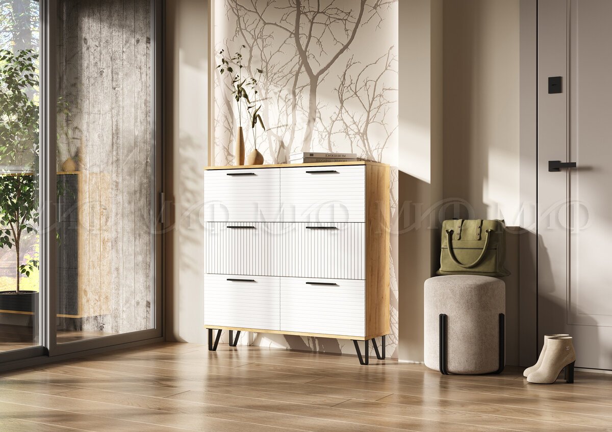 - Обувница (1000) Флэш Браш Вайт, Дуб Крафт