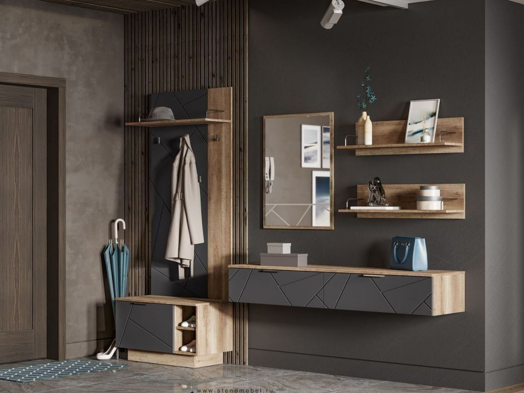 Цена за комплект на фото: ВШ 01 Вешалка, З 01 Зеркало, ПЛ 01 Полка - 2 шт, ТБ 03 Тумба