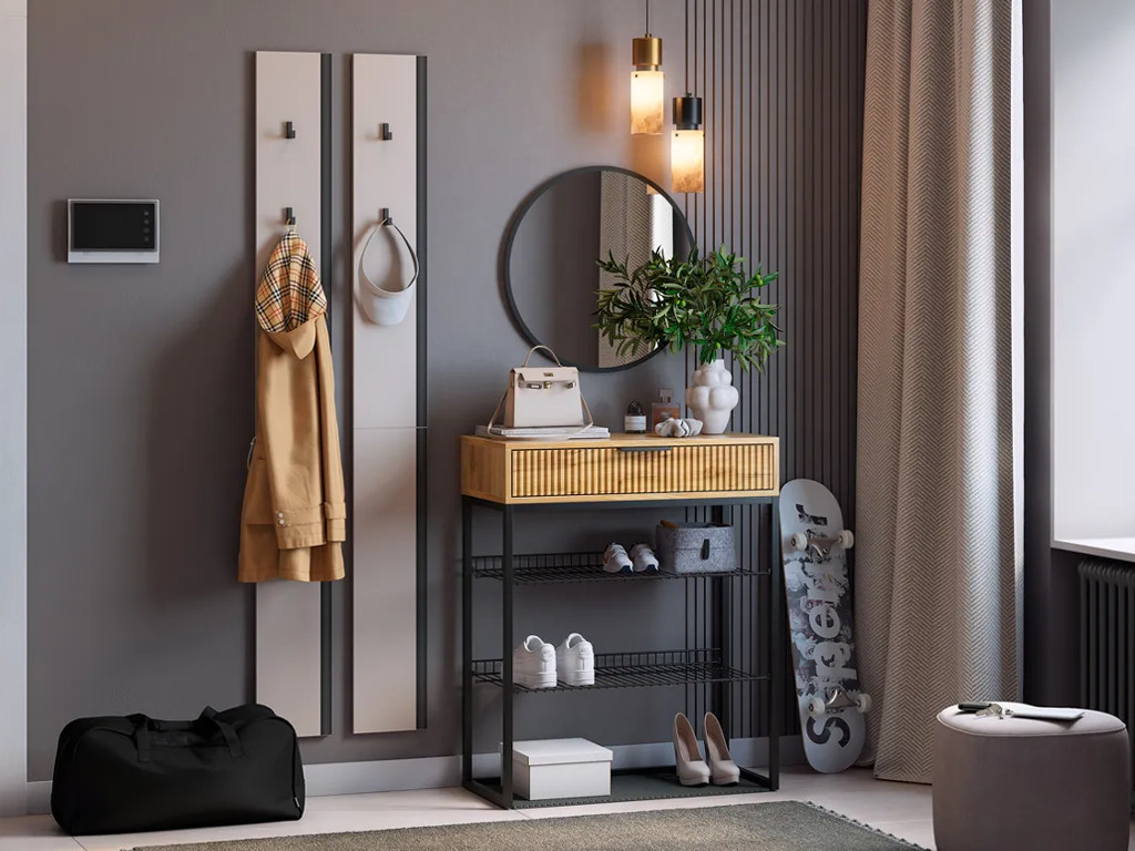 - Прихожая Мебельсон К19 кашемир/дуб крафт золотой/черный муар
