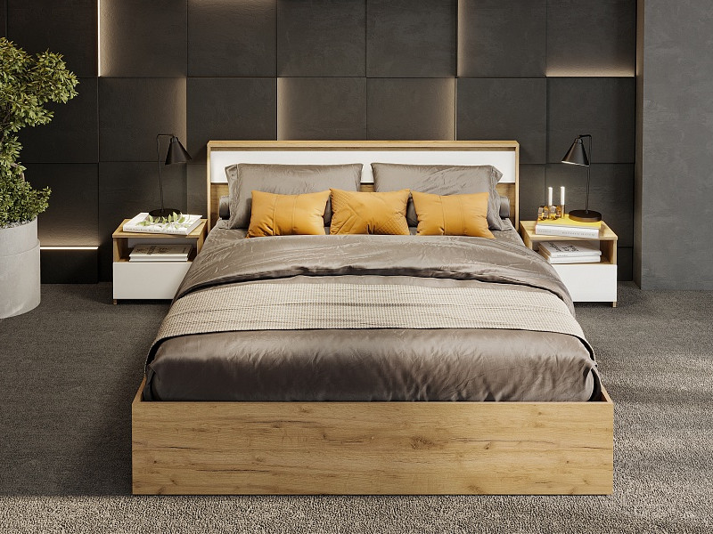 - Кровать двойная 1600 Некст 1 Дуб Золотой/Белый