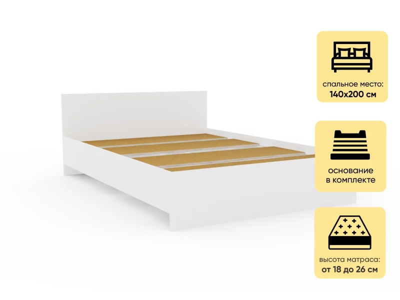 - Кровать Монблан 140х200 см Белый Шагрень