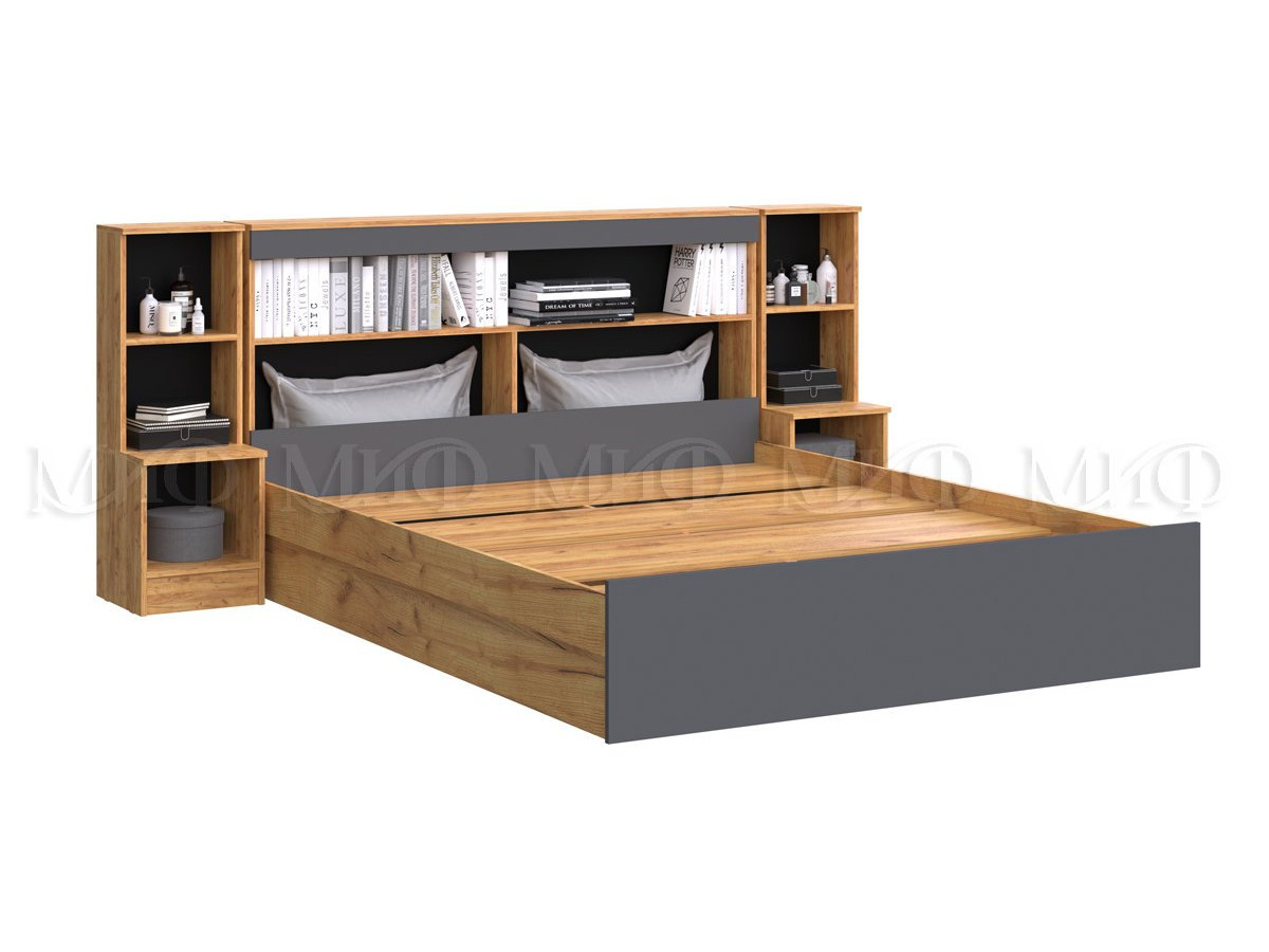 Кровать с надстройкой с тумбами Бася Миф Графит
