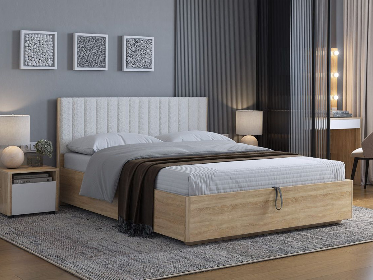 - Кровать с подъемным механизмом Юлия 140х200 см дуб сонома