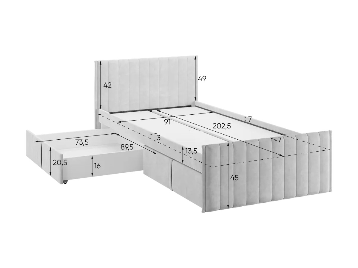 Кровать с ящиками Твикс цвет велюра капучино