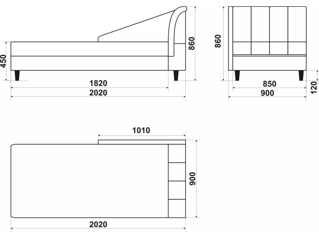 Размеры дивана (мм): 2020*900*860