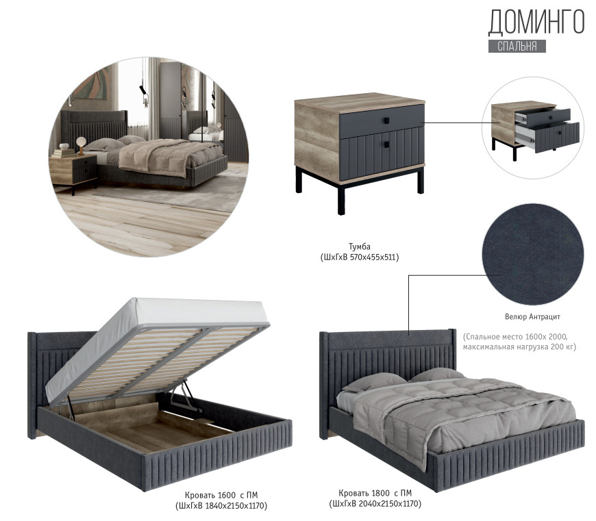 Цена за комплект: Тумба, Кровать (1600), Шкаф 4 двери (зеркало), Зеркало, Стол туалетный, Комод 5 ящиков