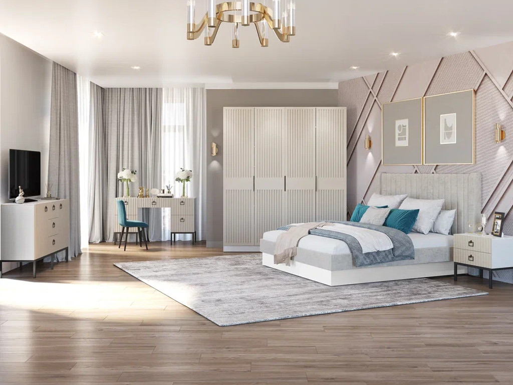 Цена за комплект: Кровать (1600), Тумба, Стол туалетный, Комод, шкафа 4 двери, Двери глухие 4 шт
