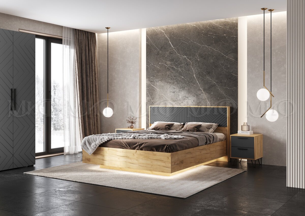 - Спальня Флэш Браш Графит, Дуб Крафт