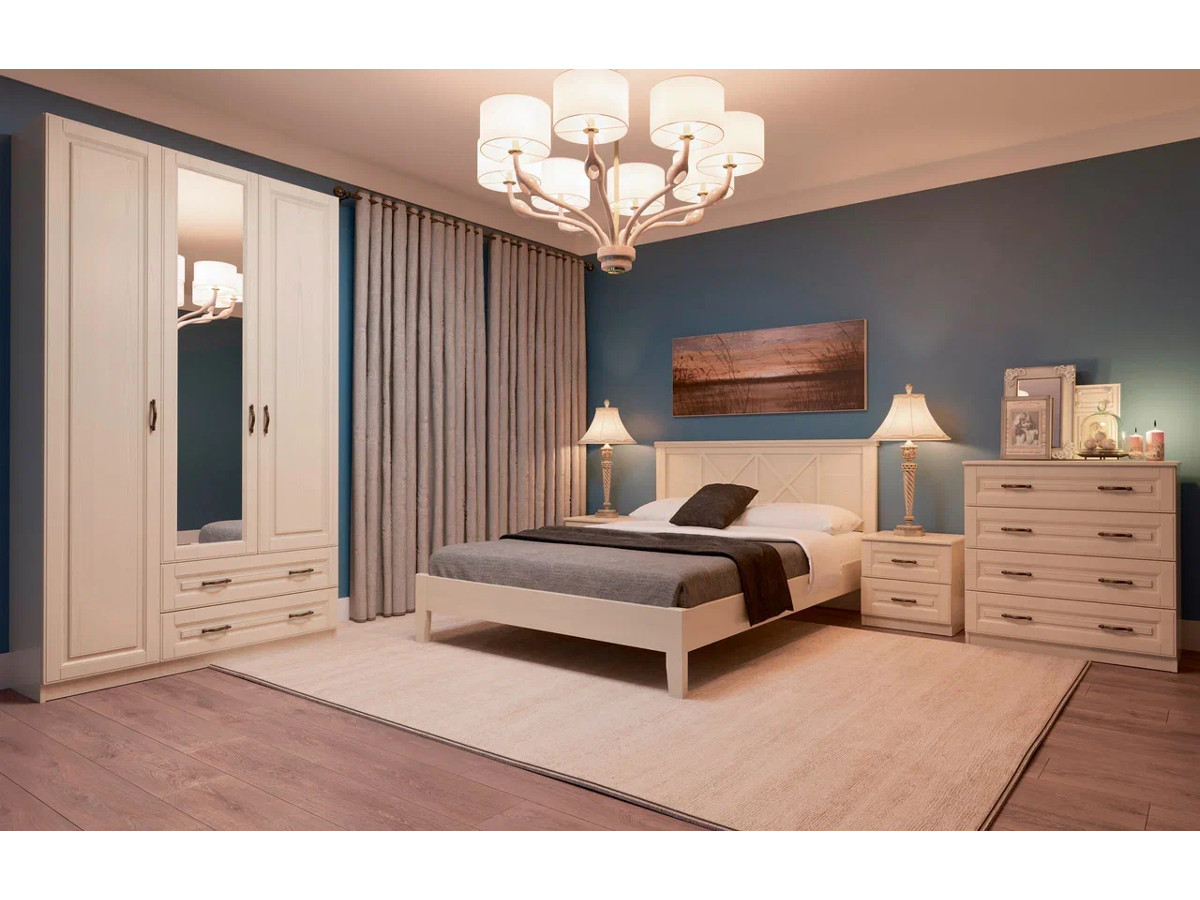 Цена за комплект: кровать ГРАЦИЯ-2 1400 мм, Комплектующие на кровать с ламелями 1400 мм, шкаф ШР-3, комод 4 ящика, тумба прикроватная