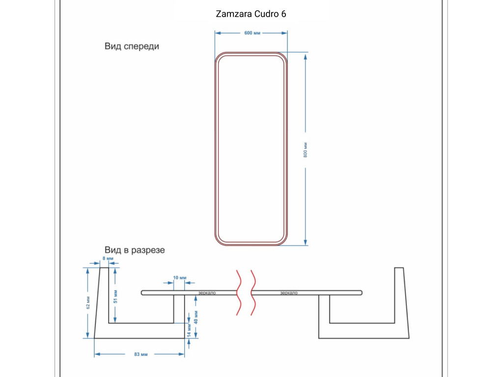 - Зеркало прямоугольное Cudro 6