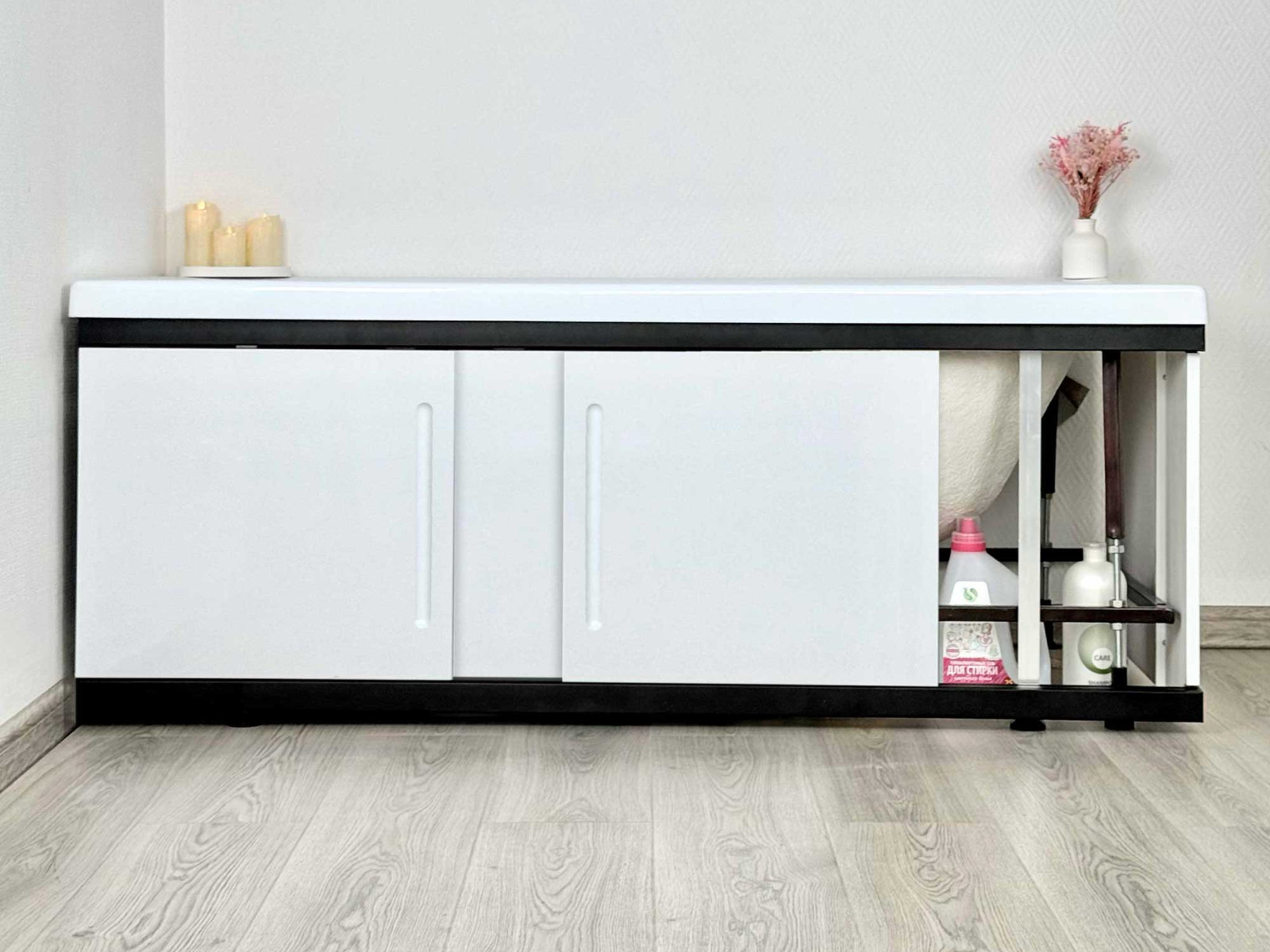 - Экран под ванну МДФ Alt Black 1500 мм белый