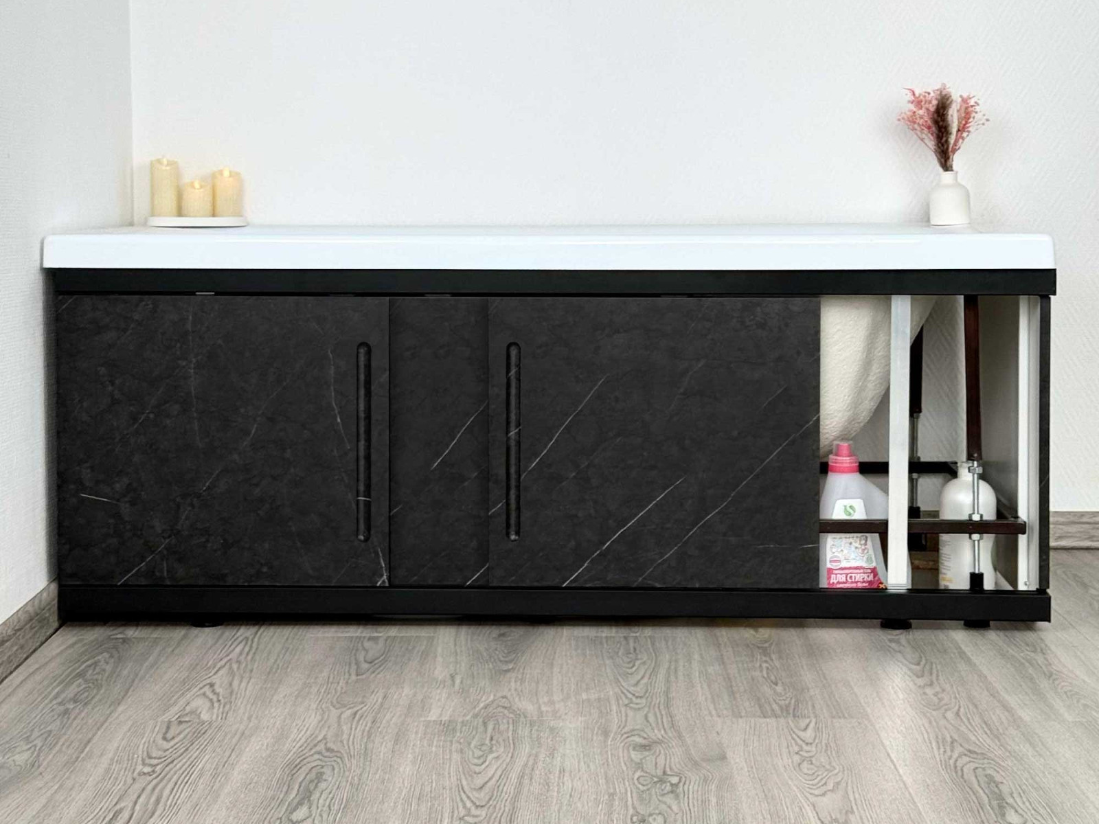 - Экран под ванну МДФ Alt Black 1500 мм черный мрамор