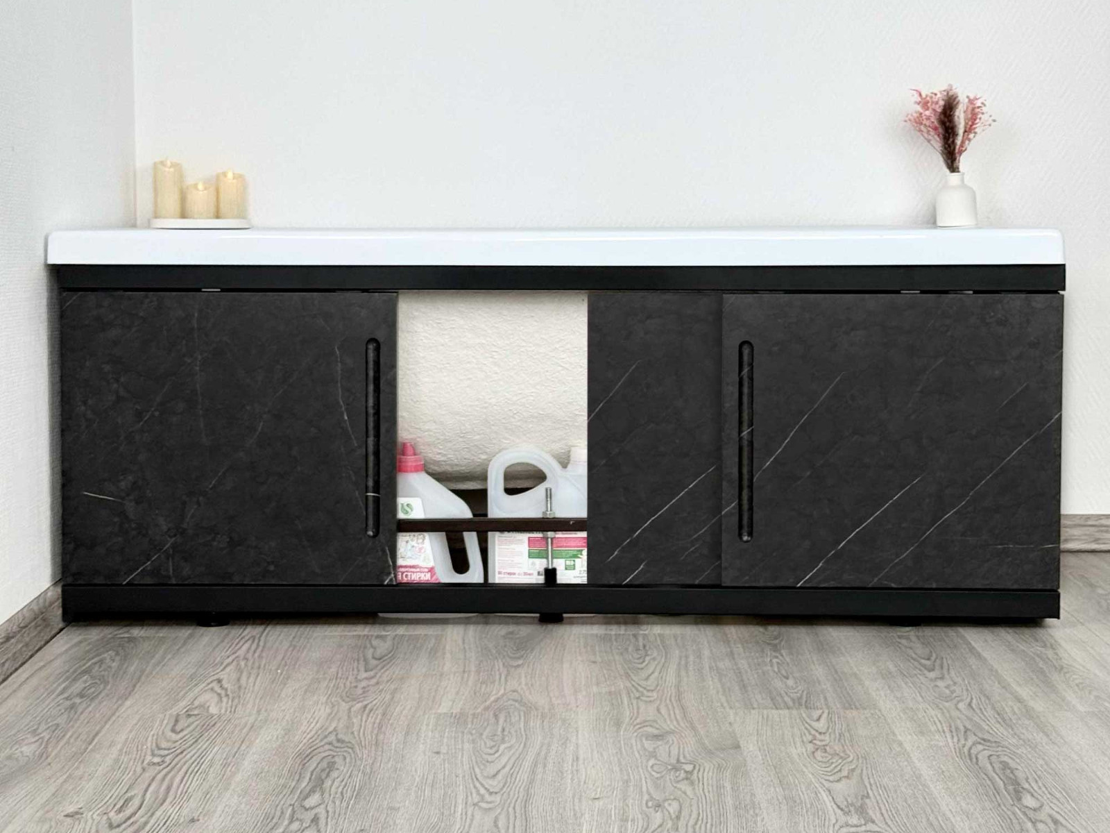 - Экран под ванну МДФ Alt Black 1700 мм черный мрамор