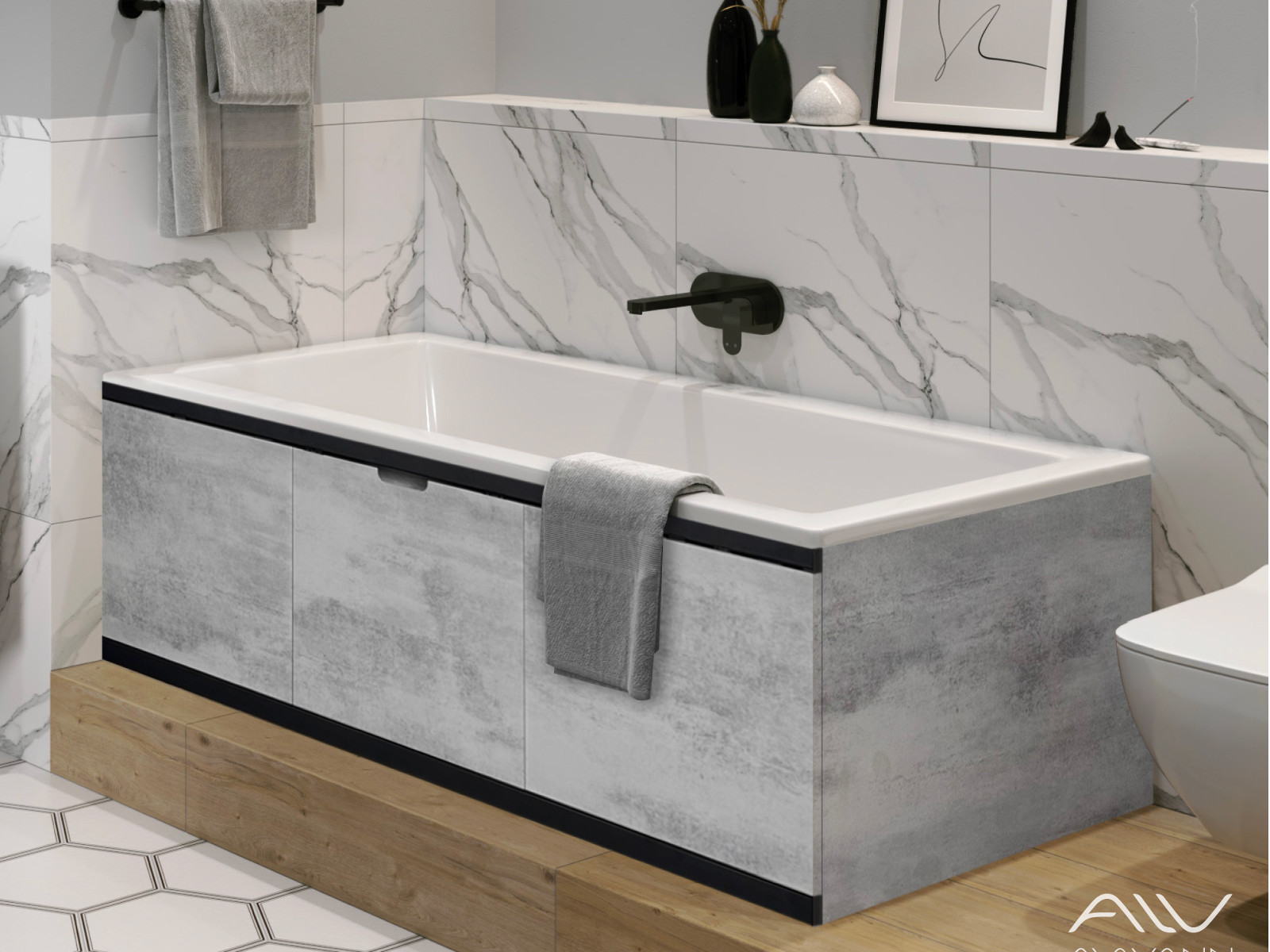 - Экран под ванну МДФ Rita Black 1700 мм серый бетон