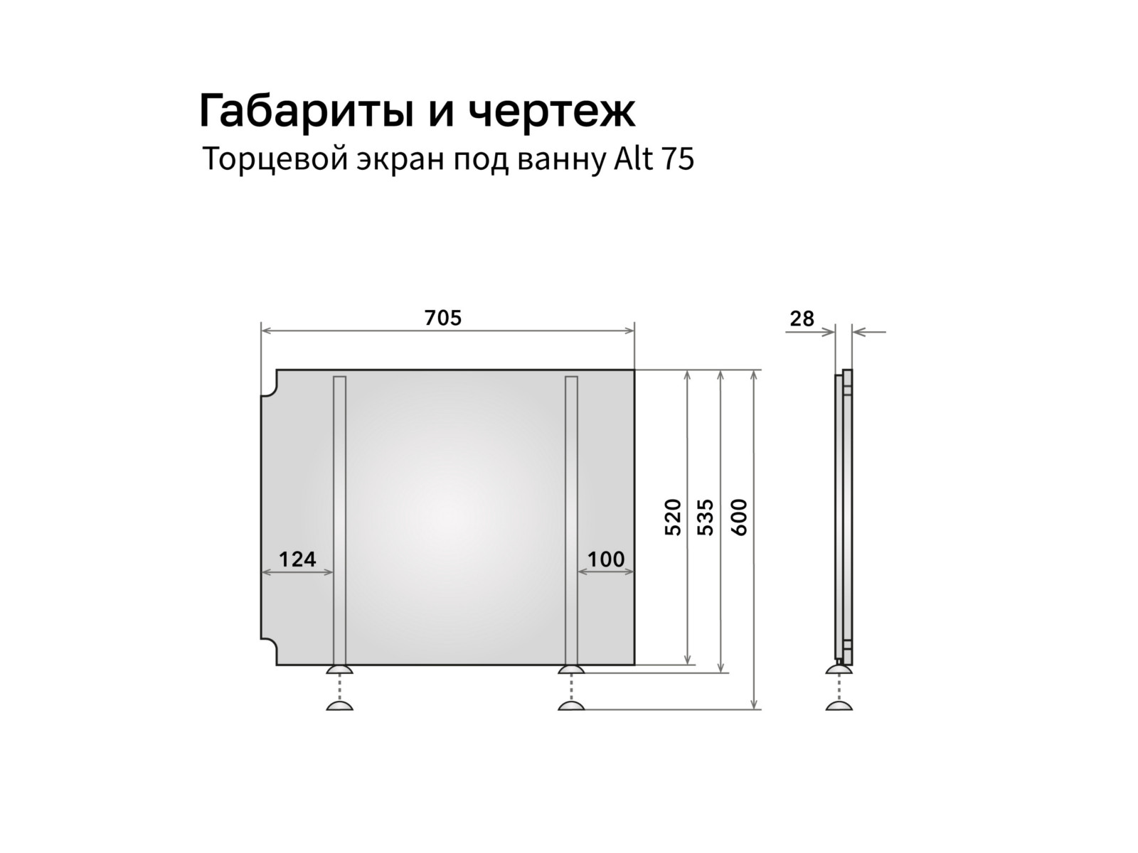 - Экран под ванну МДФ Still/Alt 0,75 торцевой серый бетон