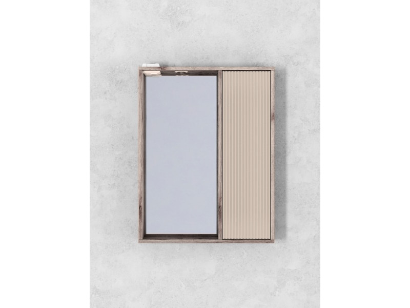 - Шкаф-зеркало Рица 60 со светильником правый cерый/керамика
