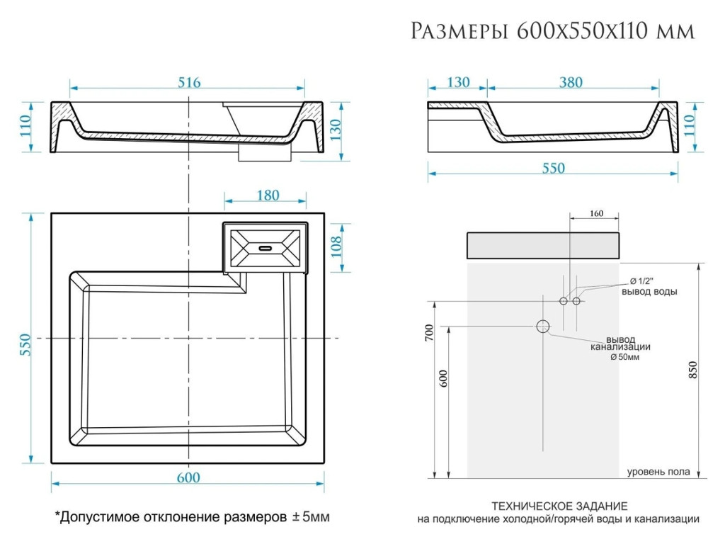 - Глубина (см) (см) 55
