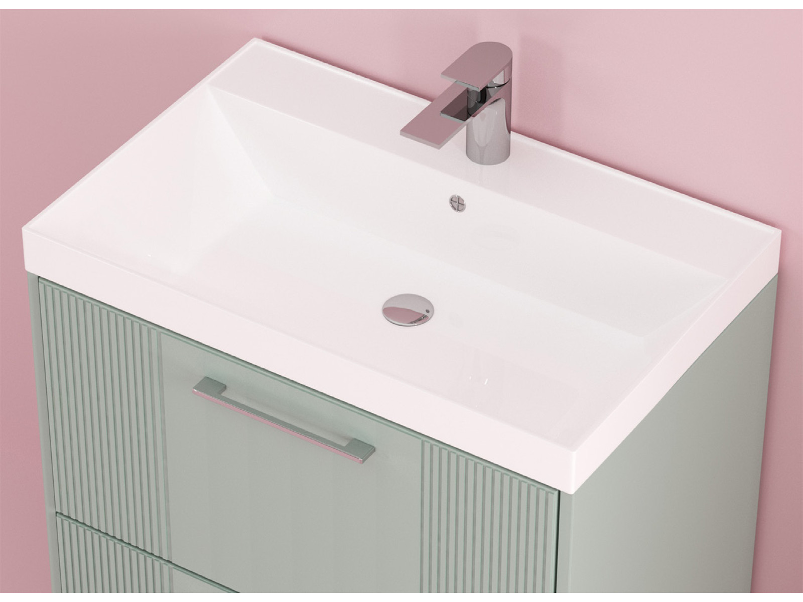 - Тумба Альба 70 подвесная 2 ящика раковина Слим 70 мята