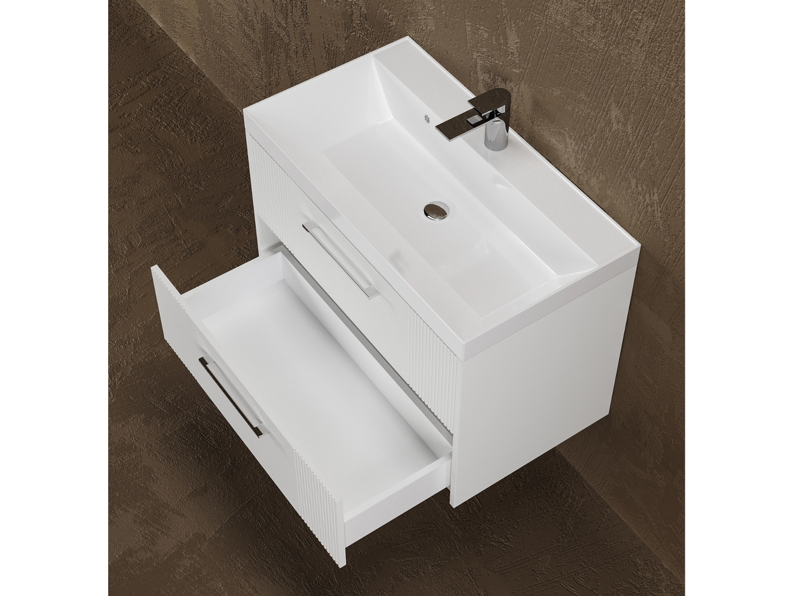 - Тумба Альба 80 напольная 2 ящика Слим 80 суфле