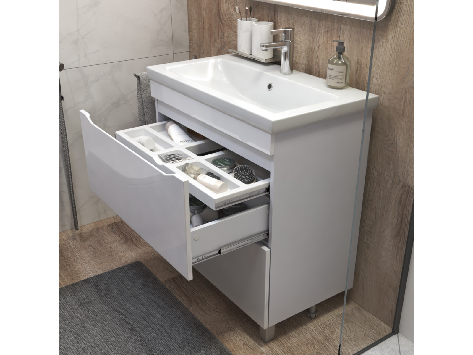 Оснащение: 2 ящика, органайзер для мелочей; опоры квадратные регулируемые