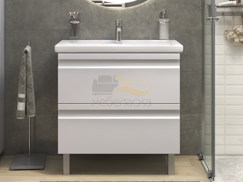 Тумба Кристалл 80 напольная 2 ящика ручка дуб, раковина Комфорт 80 Суфле