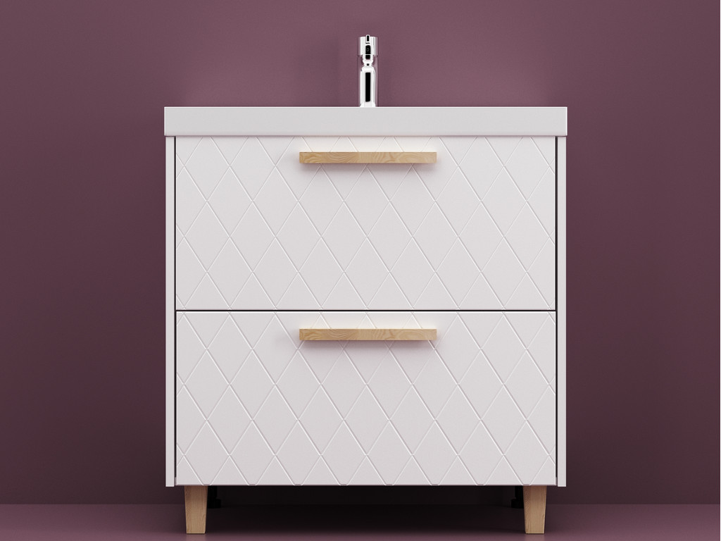 Тумба Кристалл 60 напольная 2 ящика ручка дуб, раковина Океан 60 Суфле