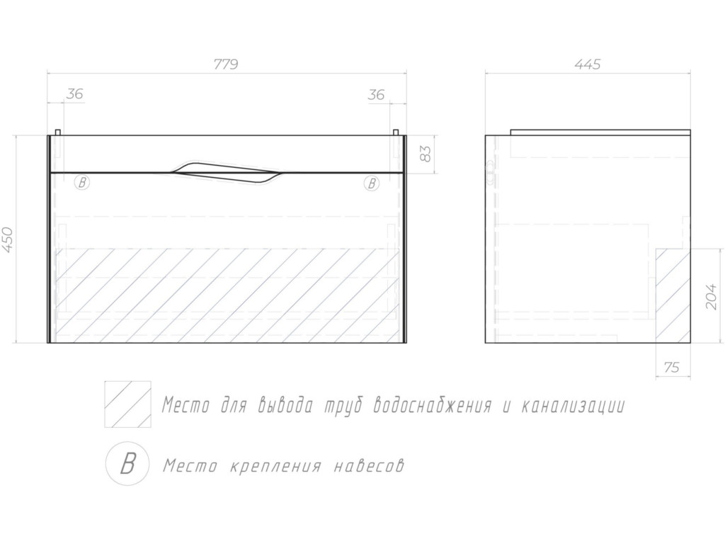 - Тумба под раковину Krona 800-0-1 Como навесная серый камень