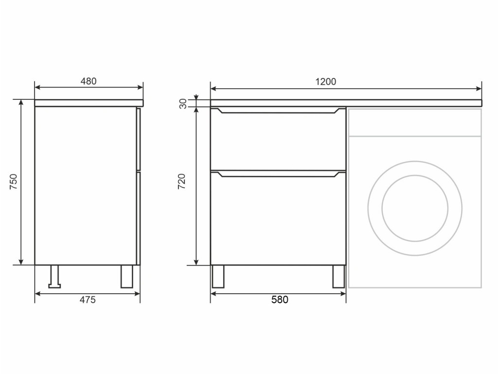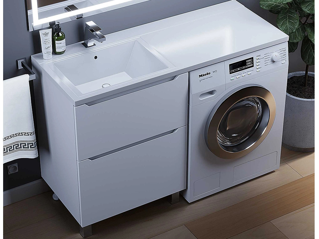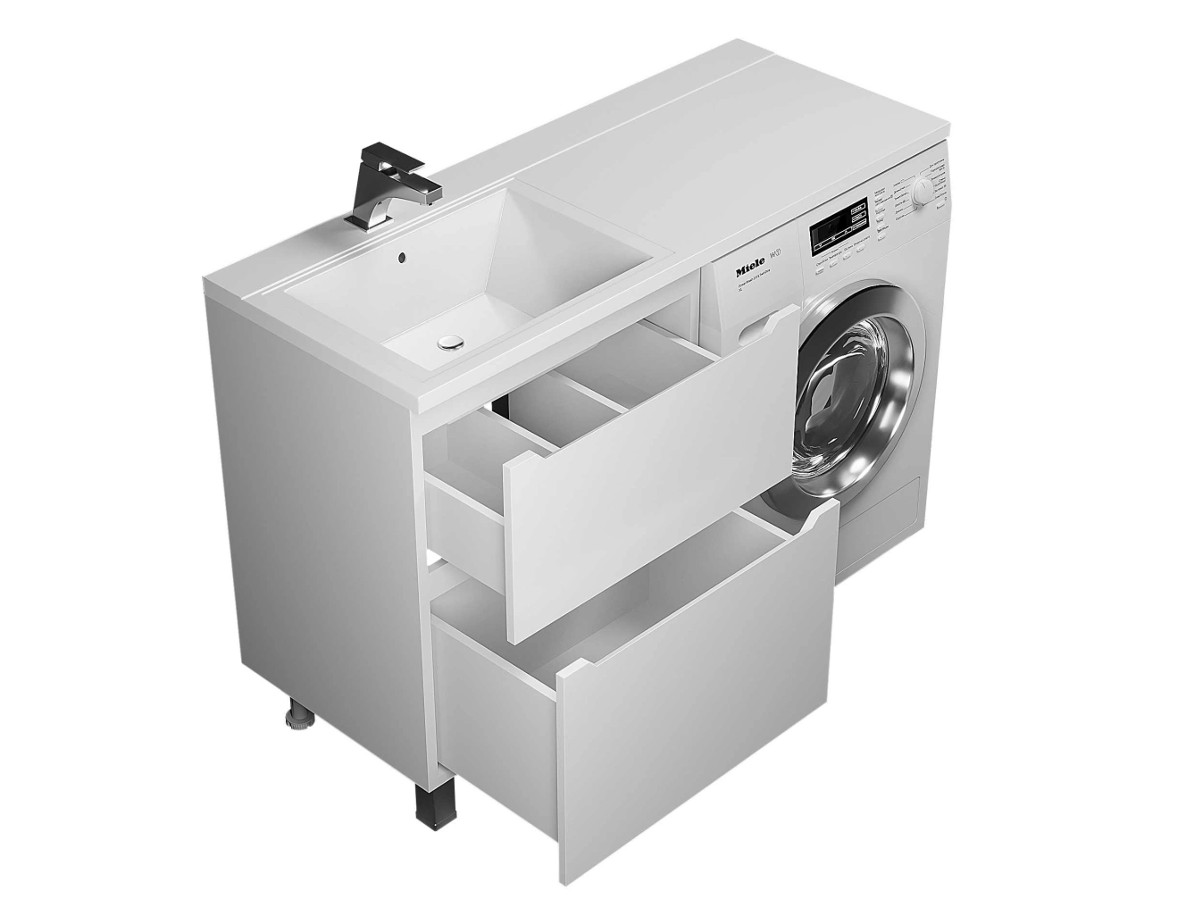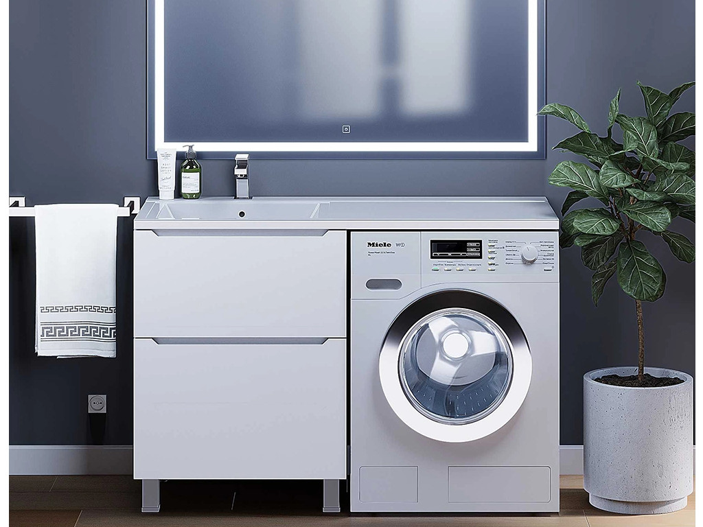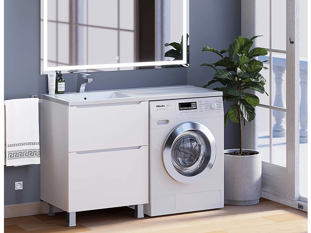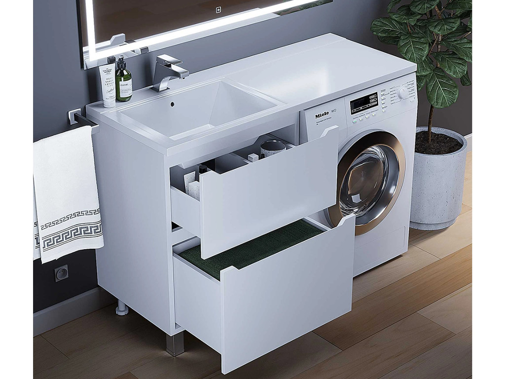 - Тумба под стиральную машину Uperwood Tanos 60 см, напольная, 2 ящика, белая