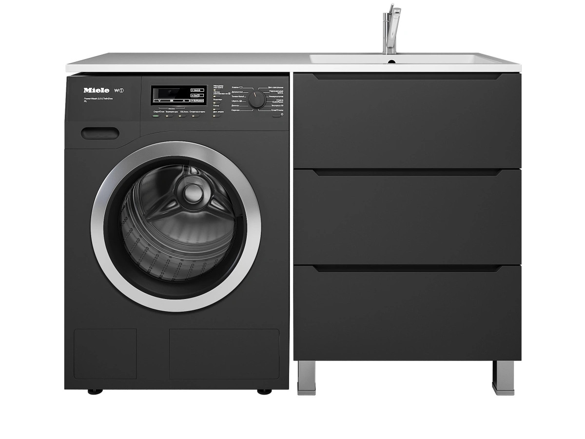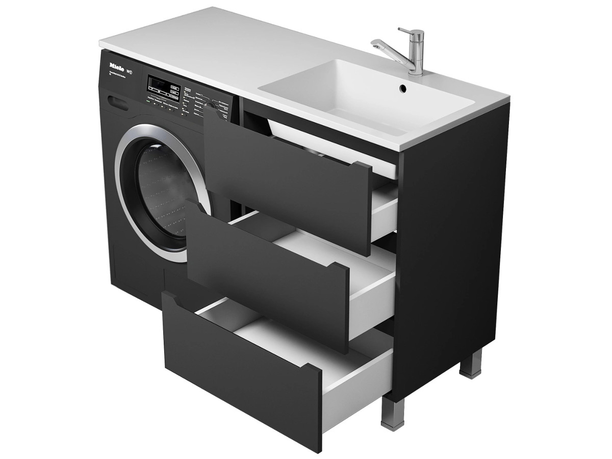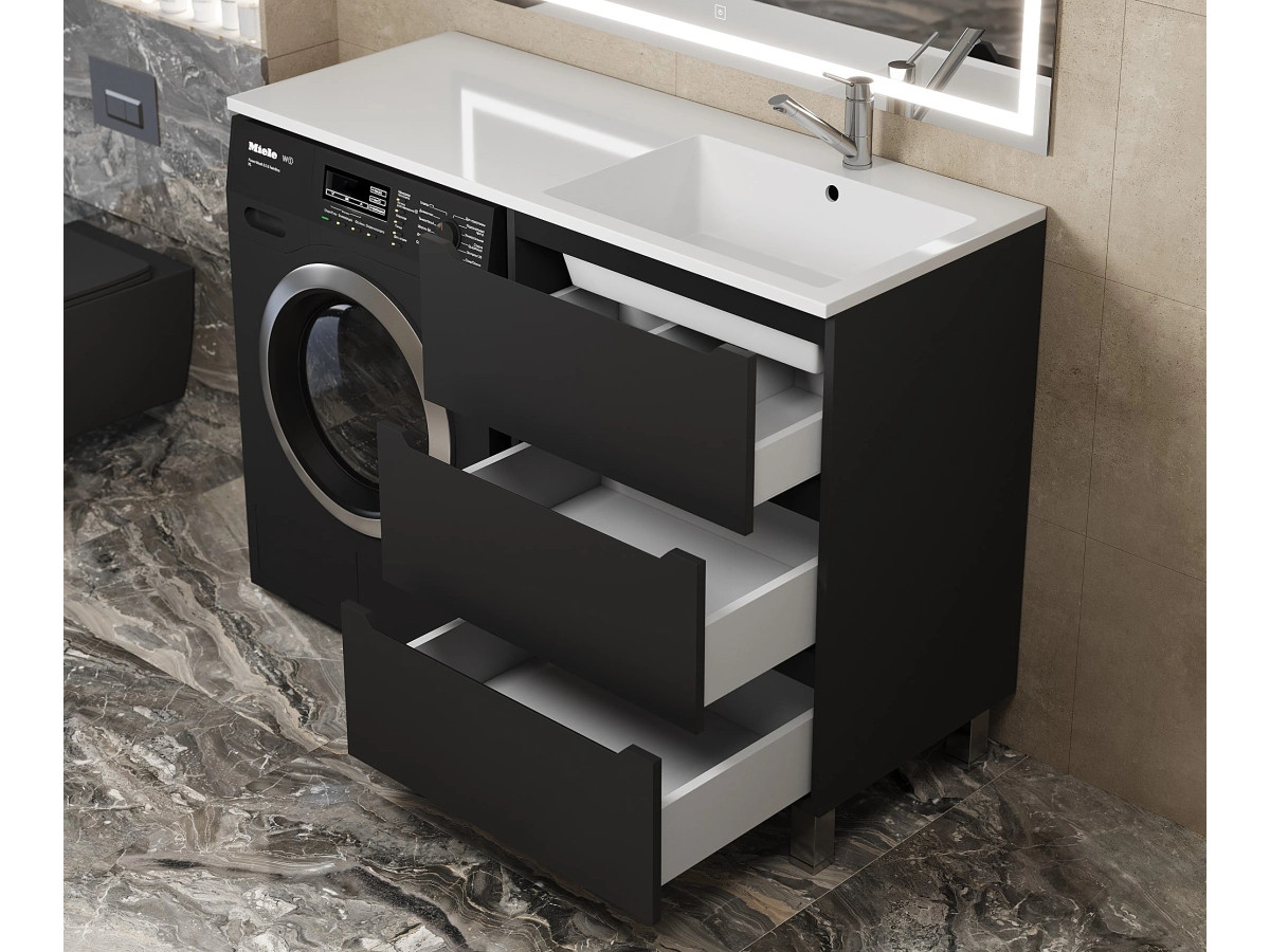 - Тумба под стиральную машину Uperwood Tanos 60 см, напольная, 3 ящика, черная