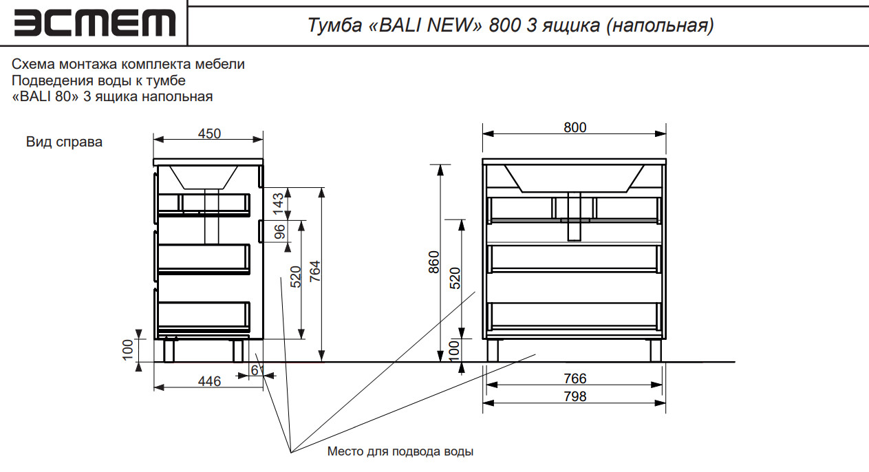 - Тумба с раковиной Bali new 800 напольная 3 ящика