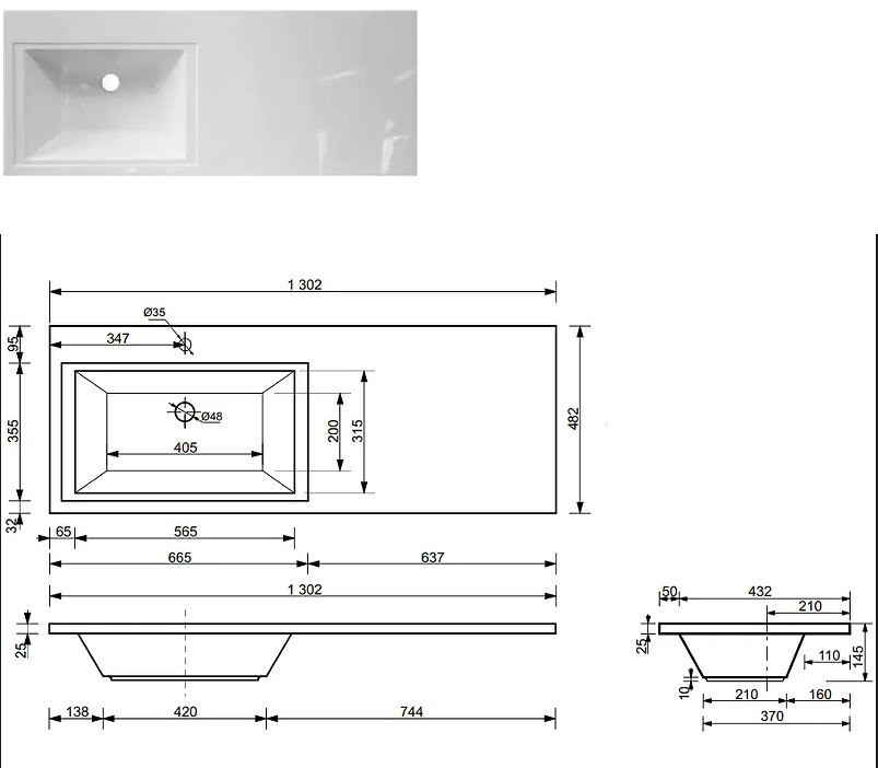 - Тумба с раковиной Dallas Luxe 1300 навесная 1 ящик левая