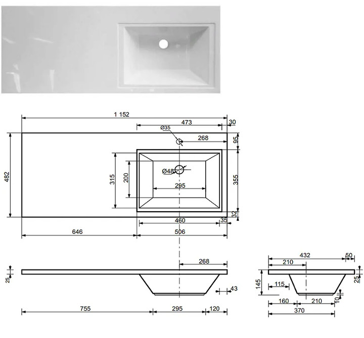 - Тумба с раковиной справа Dallas Luxe 1150 навесная 1 длинный ящик