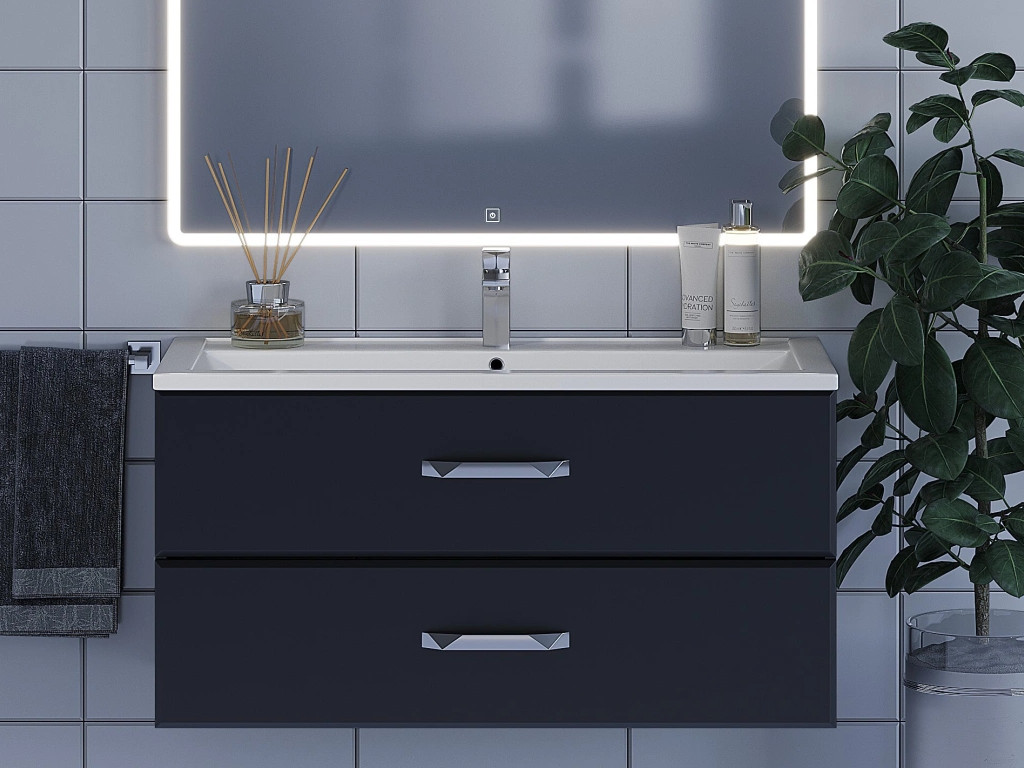 - Тумба с раковиной Uperwood Foster черная 100 см
