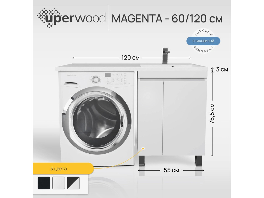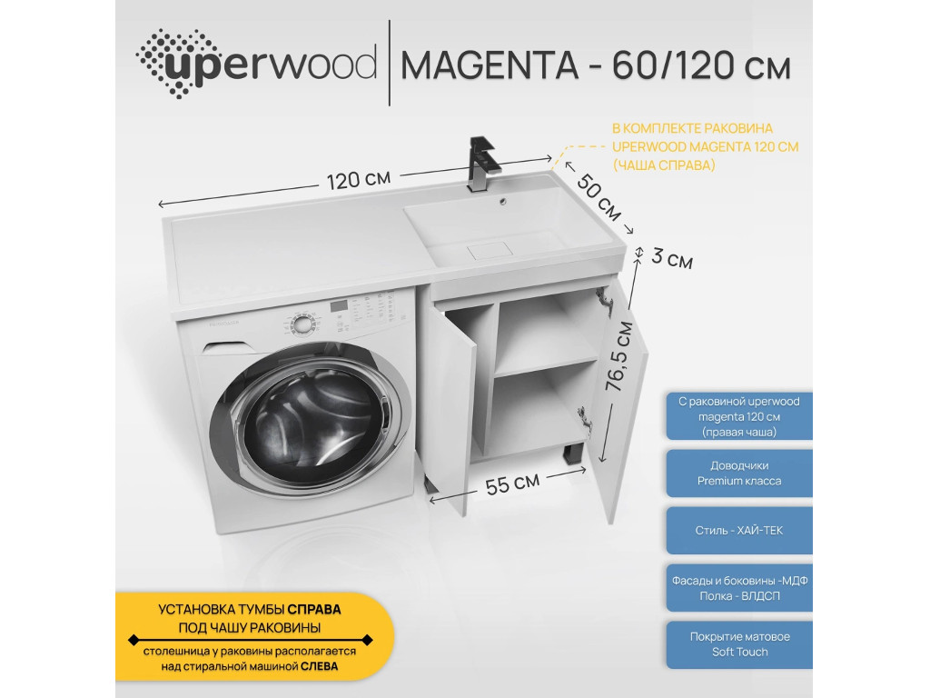 - Тумба с раковиной Uperwood Magenta 60-120 см напольная белая с дверцами правая
