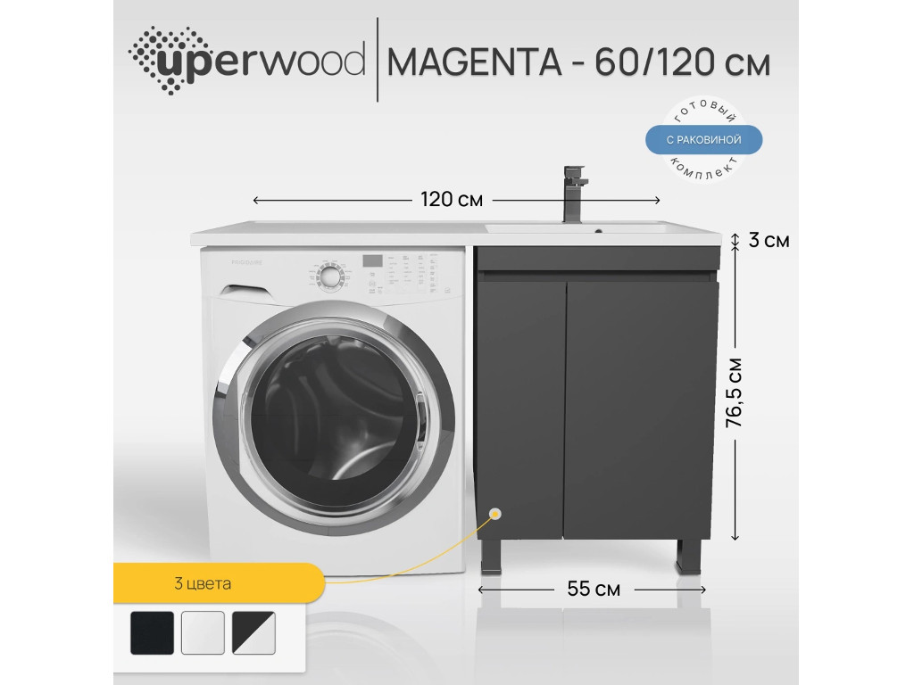 - Тумба с раковиной Uperwood Magenta 60-120 см напольная черная с дверцами правая