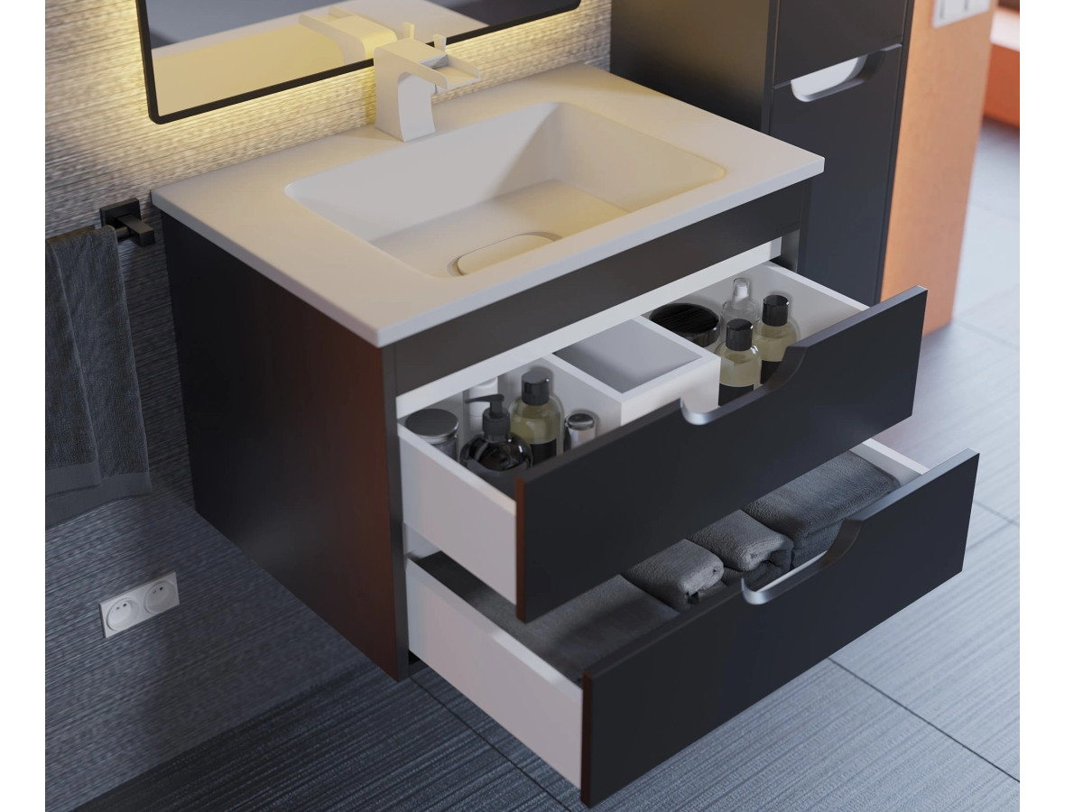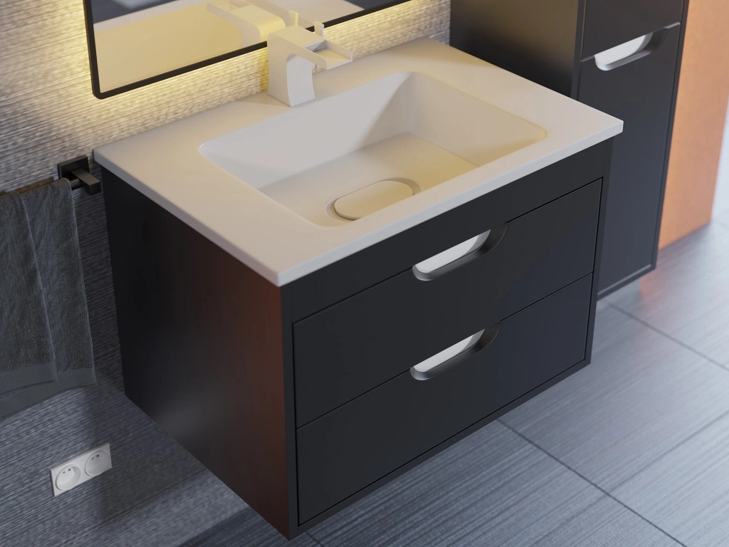 - Тумба с раковиной Uperwood Modul матовая черная 65 см
