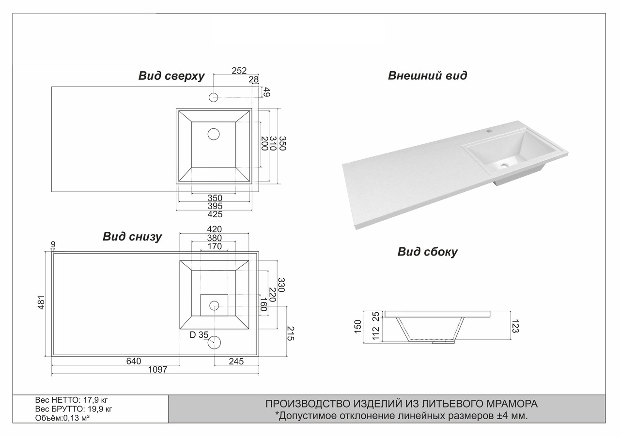 Размеры раковины: