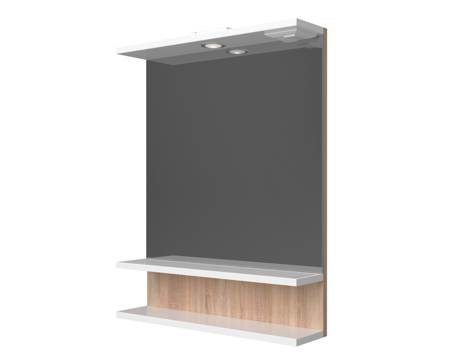 Материал: Зеркало с полками из ЛДСП и корпусом из ЛДСП, оснащен светодиодным светильником.
