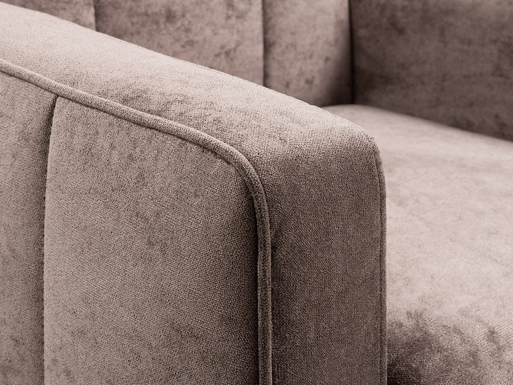 Декор: Стежка на внутренней спинке и боковине. Отделочная строчка по сидению. Декоративyый кант в тон на подлокотниках и спинке. Изюминку коллекции придают металлические пуговицы на спинке.