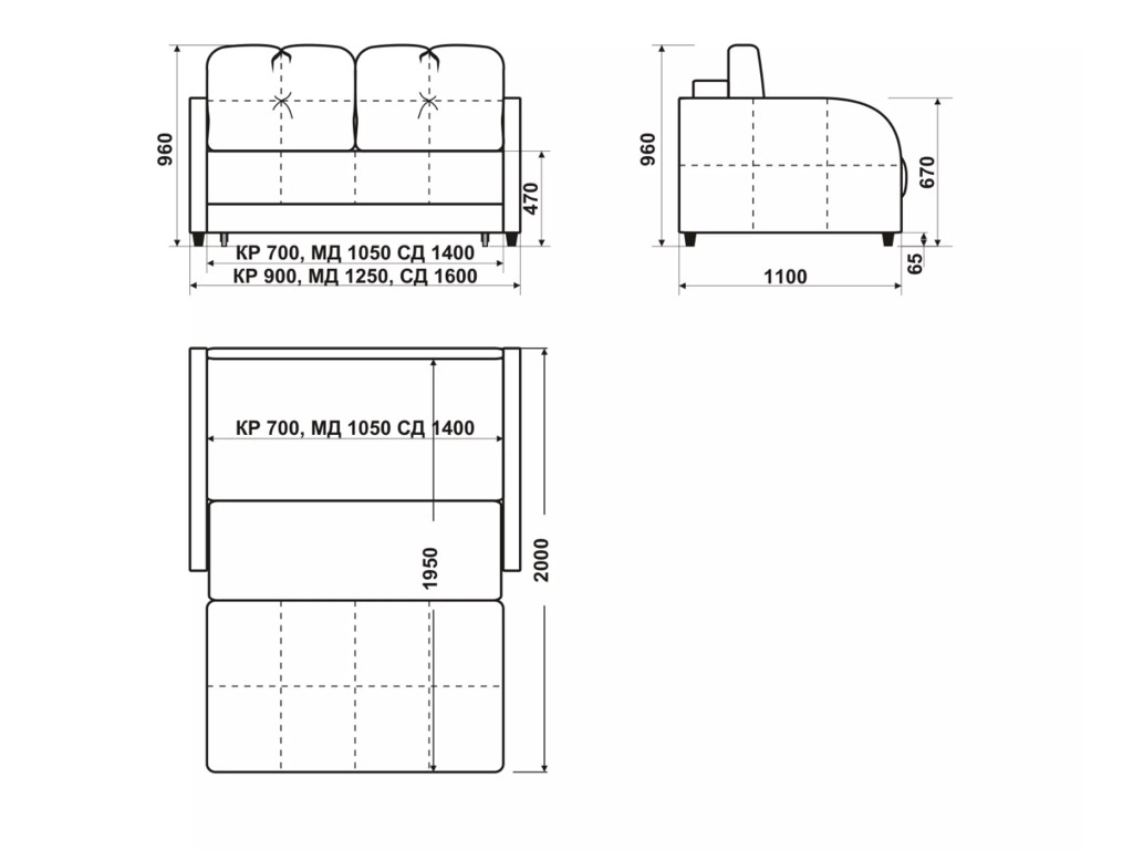 Размеры дивана (мм): 900х1100х960