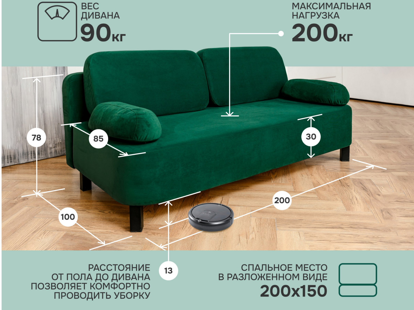 - Спальное место: 1500х2000 мм