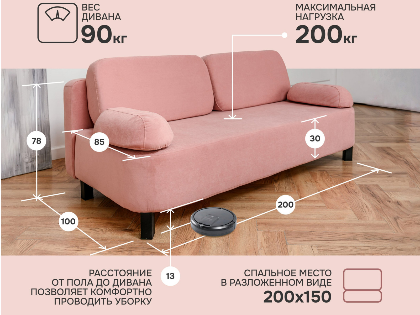 - Спальное место: 1500х2000 мм