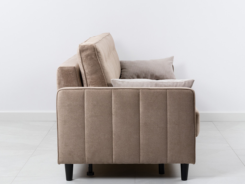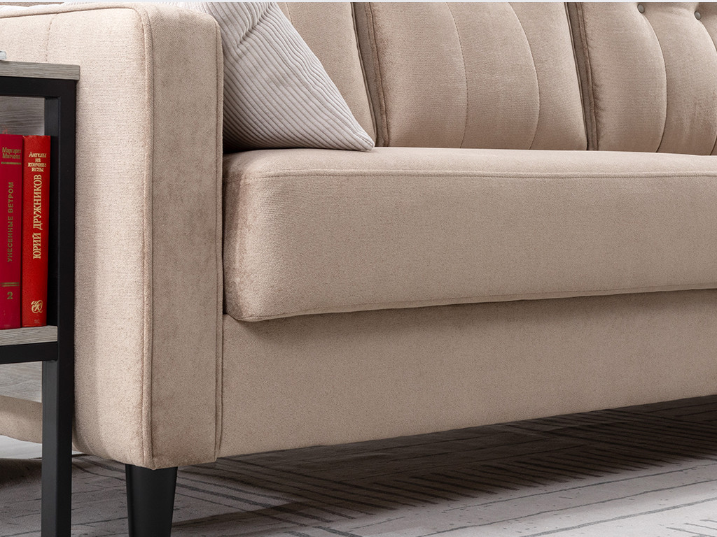 Подушки имеют трапециевидную форму, с утолщением к низу для комфорта посадки. Кант по всему периметру подушек, декоративные утяжки металлическими пуговицами, вертикальная стежка.