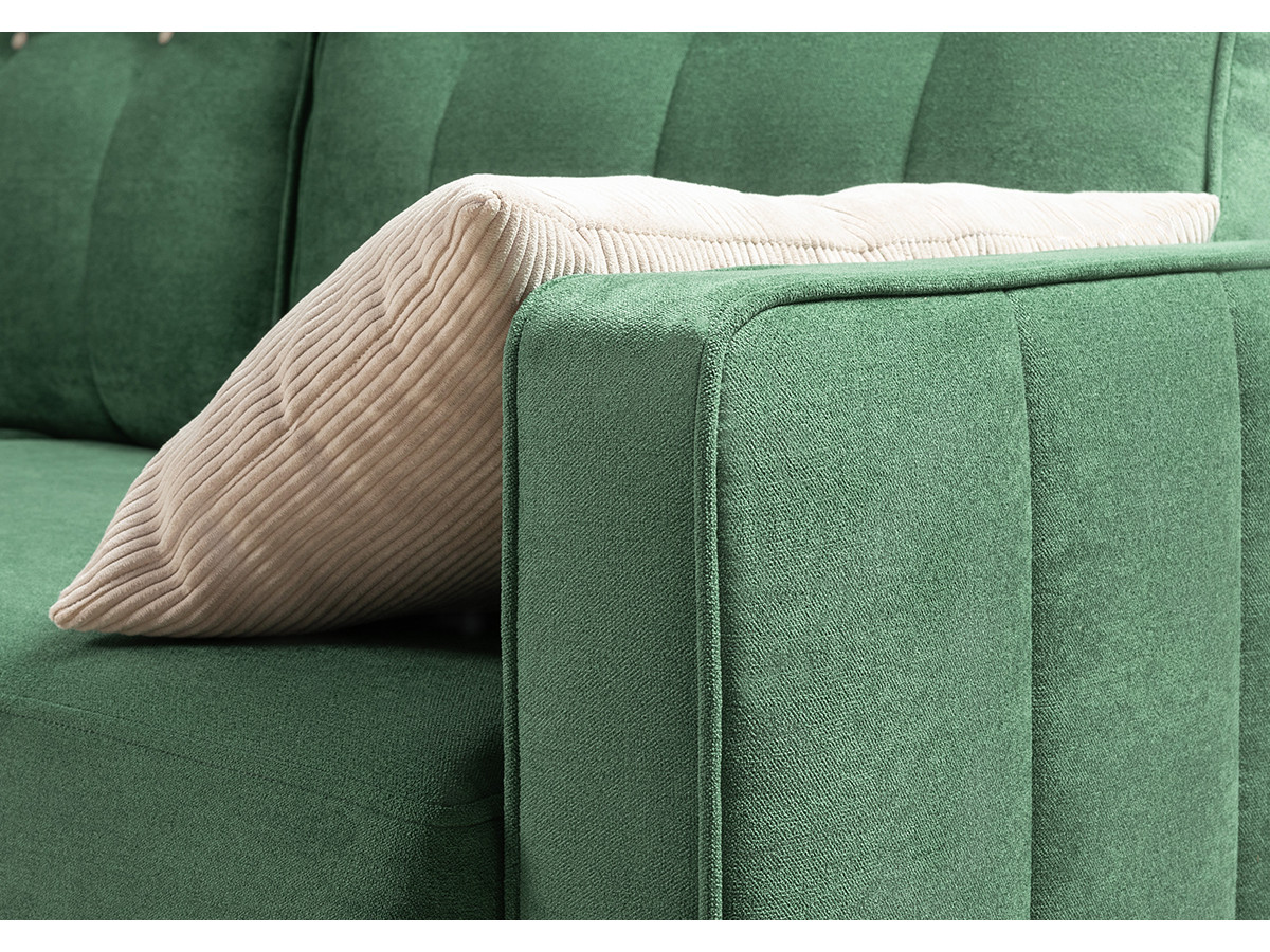 Подушки имеют трапециевидную форму, с утолщением к низу для комфорта посадки. Кант по всему периметру подушек, декоративные утяжки металлическими пуговицами, вертикальная стежка.
