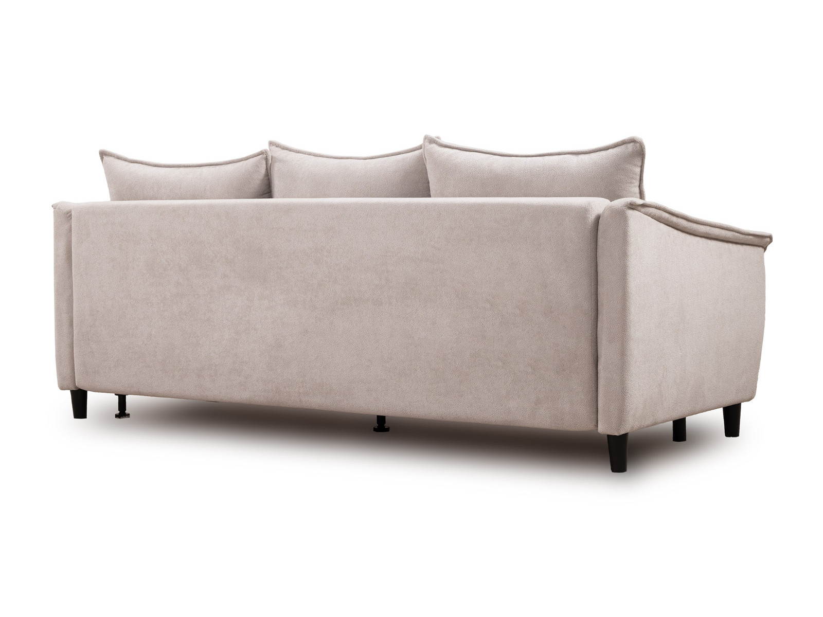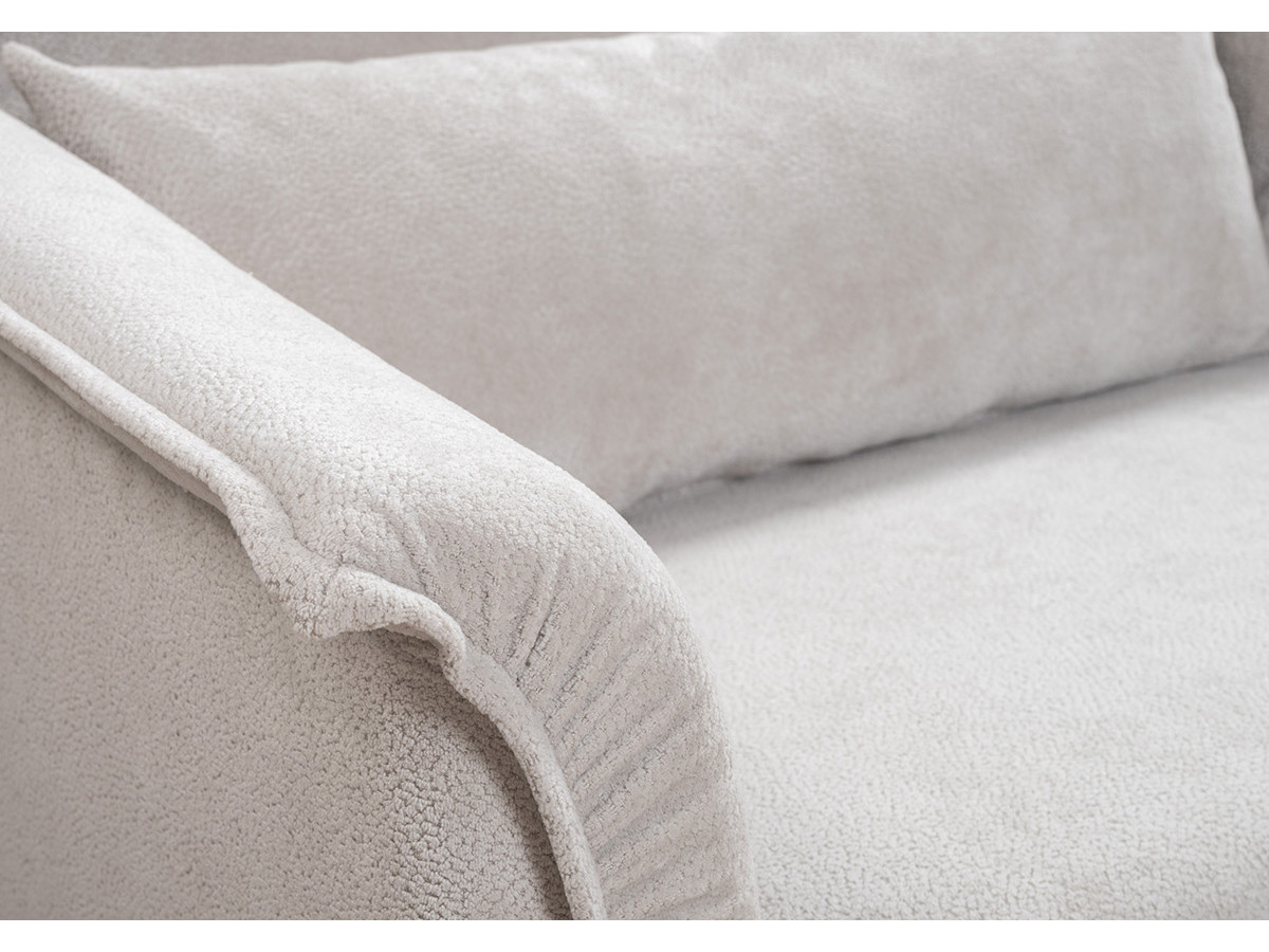 Спинка с тремя приспинными подушками. Две подушки трапецивидной формы, центральная квадратной формы на молнии, по трем сторонам которых проложена отделочная строчка на 1,2 см. По контуру боковин проложен декоративный кант на 1,2 см из основной ткани. Кант проходит по центру передней части боковины, а по внутренней верхней части сборка.