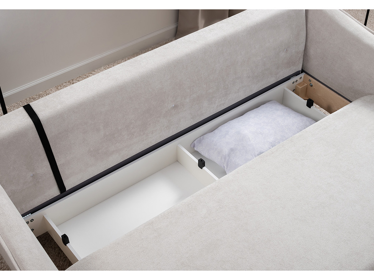 Бельевой ящик:  есть с перегородкой по центру (2 отделения) размер отделения (Д x Ш, мм): 786 x 688 x 120