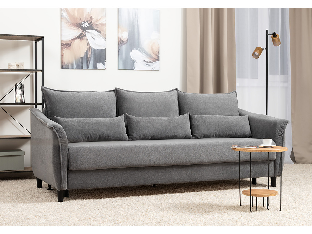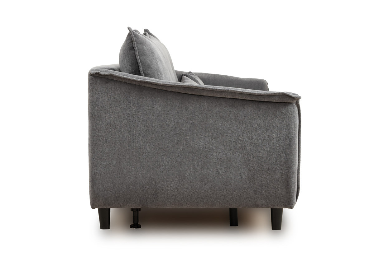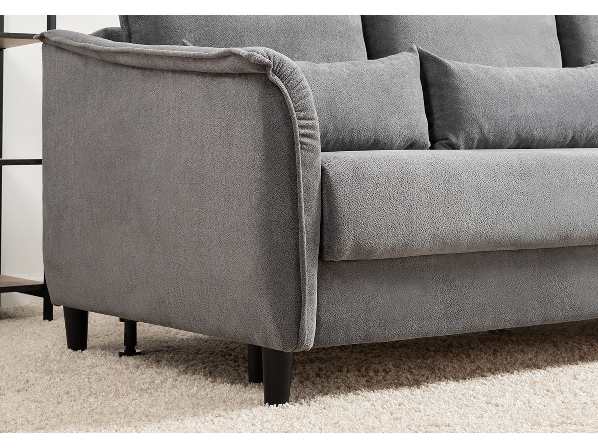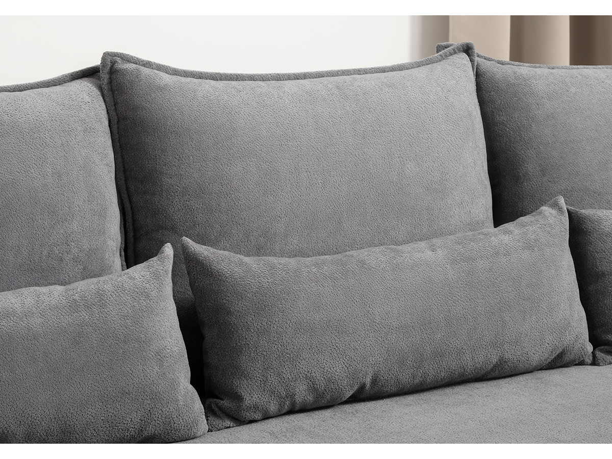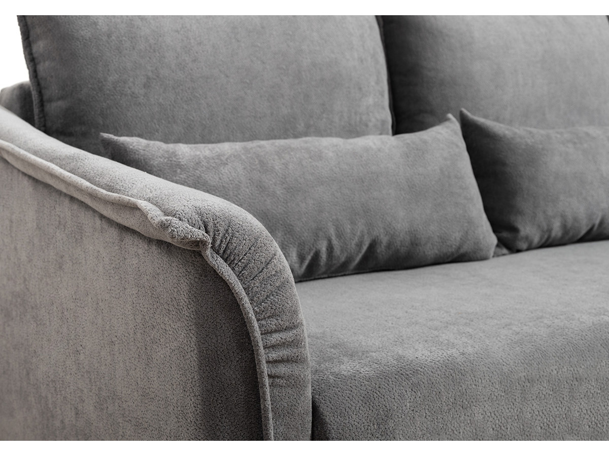 Спинка с тремя приспинными подушками. Две подушки трапецивидной формы, центральная квадратной формы на молнии, по трем сторонам которых проложена отделочная строчка на 1,2 см. По контуру боковин проложен декоративный кант на 1,2 см из основной ткани. Кант проходит по центру передней части боковины, а по внутренней верхней части сборка.