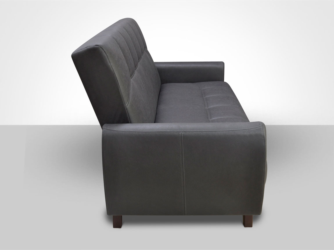 Минималистичный дизайн, узкие подлокотники с выбором цвета накладок из МДФ,контрастная отстрочка и утяжки-пуговицы.